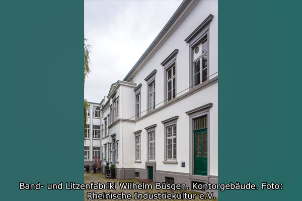 1877 übernahm der Fabrikant und Bandweber Wilhelm Büsgen die Gebäude. Büsgen arbeitete zunächst ausschließlich mit Heimarbeitern, die Einfasslitzen für Herrenröcke auf Bandstühlen oder Riementischen herstellten. In den 1880er Jahren weitete sich die Produktion aus und im Hof entstand 1886 ein großes Kontorgebäude. Hier wurden das Material für die Heimarbeiter vorbereitet und ausgegeben und die fertigen Bänder entgegengenommen, gehaspelt und verpackt. Eine Liefertür, auf Höhe der Ladefläche eines Handkarrens, erinnert an die Lieferungen der Heimarbeiter. Später zog Wilhelm Büsgen in eine nahegelegene Stadtvilla und im Wohnhaus wohnten Angestellte: der Obermeister, der Haspelmeister, zwei Kettenschererinnen, eine Heimarbeiterin.