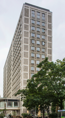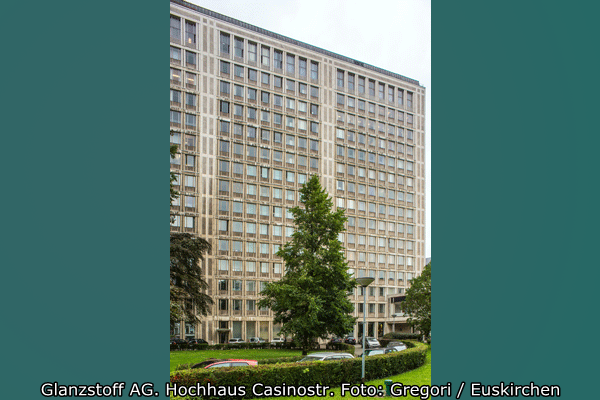 Zur Bauzeit der „neuen Zentrale“, dem Glanzstoff-Hochhaus“ hatte sich die Zahl der Mitarbeiter an den verschiedenen Produktionsstandorten auf etwa 23.000 Mitarbeiter erhöht. Das entsprach mehr als der Hälfte der etwa 40.000 Beschäftigten in der westdeutschen Chemiefaserbranche. Die Verwaltungszentrale organisierte die deutschlandweite Produktion und den weltweiten Verkauf ihrer Produkte: neben den Produktionsstandorten in Deutschland wurden die fünf Vertriebsfirmen in Europa gesteuert und weltweite Handelskontakte gepflegt.